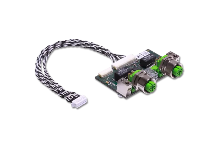 包括一個獨立的網路介面(15 或 20 公分的纜線長度)- 可選配 M12 連接器(具防水功能)
